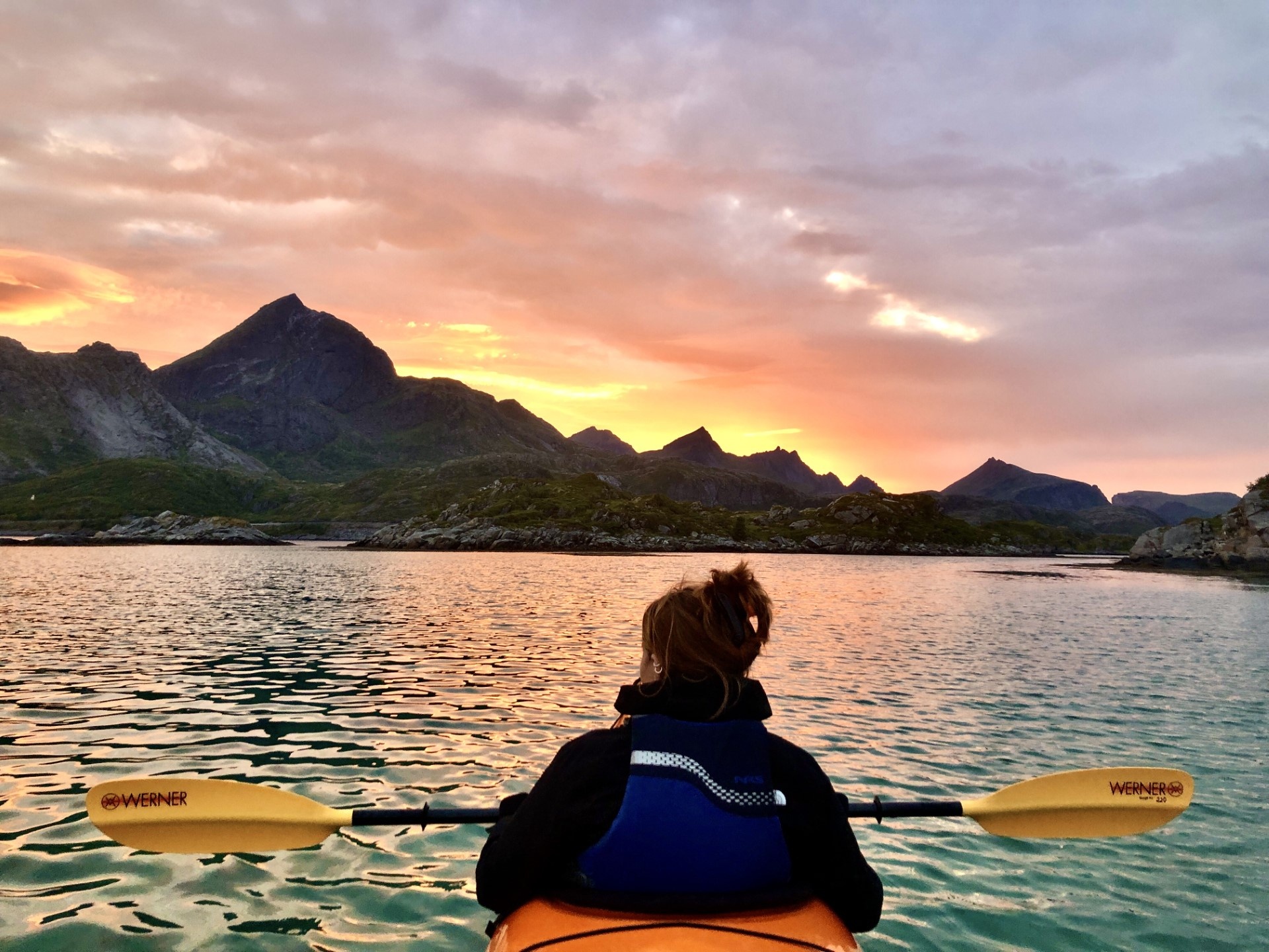 If you will be visiting the Lofoten Islands BEFORE the 15.May or AFTER 25.July and want a chance to experience som amazing evening light we recommend you to book a 3 hour evening kayak trip.