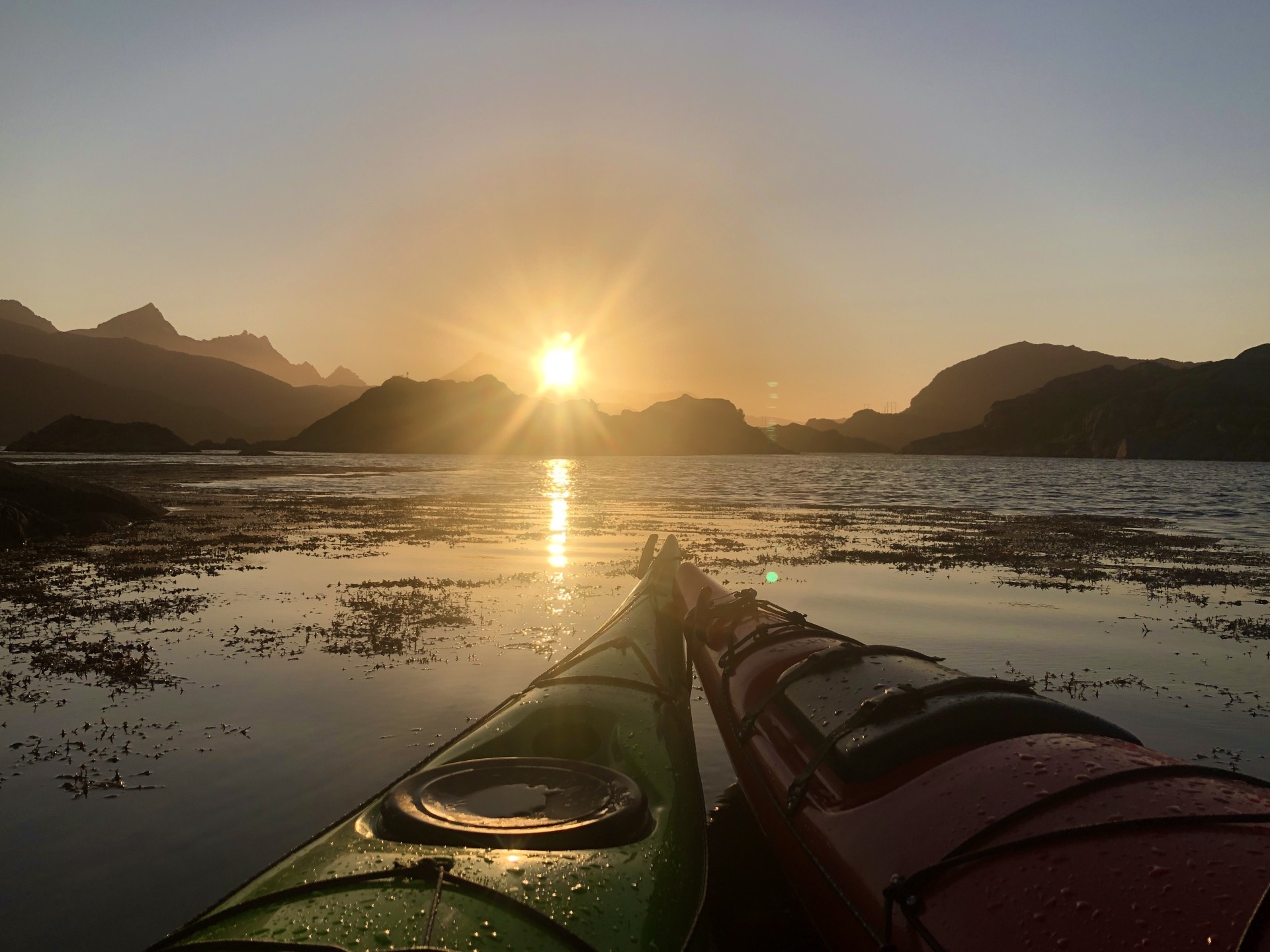 Together we will explore the surrounding area, kayaking an ocean channel, fjord, between islands, through shallow areas, alongside great mountains that rise straight from the ocean. Whilst learning about the Lofoten history and amazing stories. On average we paddle 8-10 km. This adventure is more than kayaking, it is full of nature, history, geology and wildlife. If we are lucky we might spot an eagle, a seal, an otter or even whales. One never knows what to expect, which makes each trip unique. We’ll soak in the calmness and beauty. A midnight experience you will not forget.